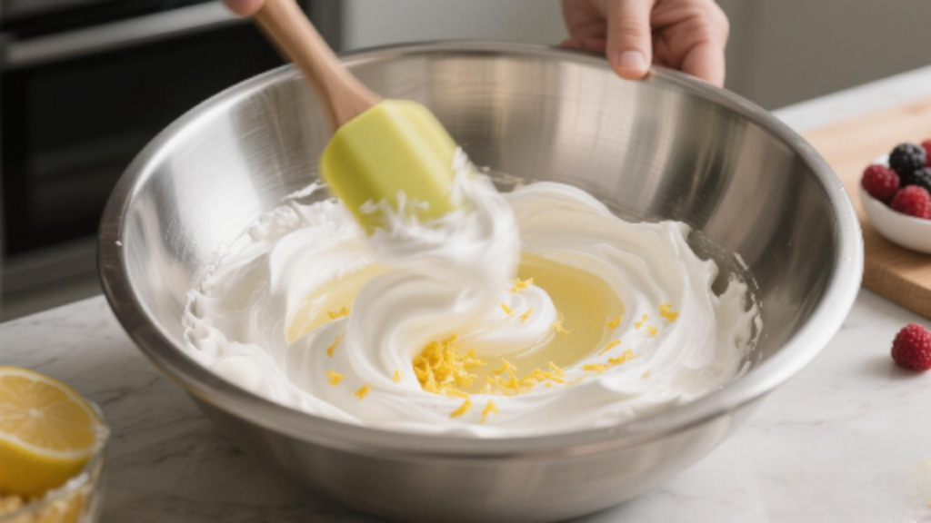- Cream Stability: Whipping the double cream to soft peaks before folding in the lemony sugar mixture prevents overwhipping and graininess.