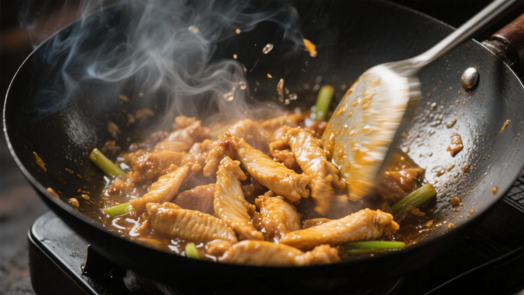 Return the cooked chicken and any juices to the wok. Toss everything vigorously for 1 minute until piping hot and uniformly coated in the glossy sauce. Serve immediately over steamed rice.