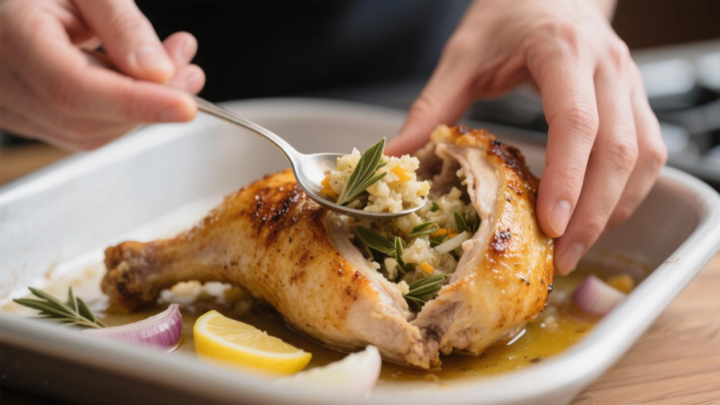 - Flavour Enhancement Hack: After searing the thighs, use the rendered fat in the pan to fry the onions for the stuffing. This chicken-scented fat is liquid gold.