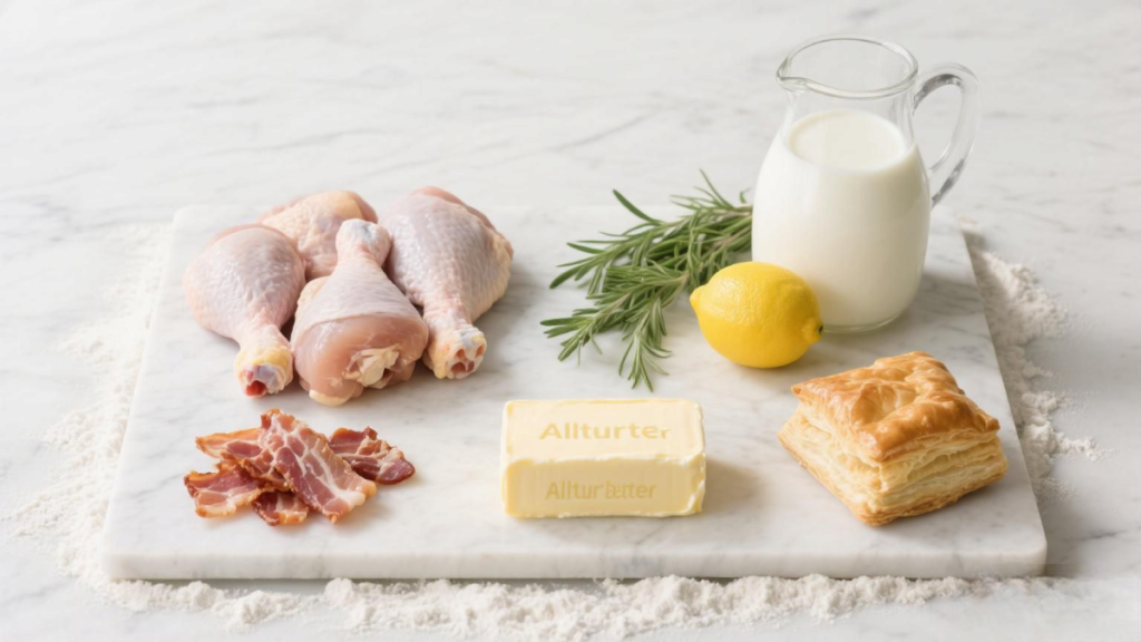 This is Mary Berry’s ultimate Sunday lunch chicken pie. It is not just a pie; it is a centrepiece. Mary’s philosophy is simple: a proper pie should be generous, comforting, and technically perfect. The filling must be deeply savoury and rich, never thin or watery. The lid must be crisp and fully cooked, with absolutely no hint of a raw, doughy layer underneath. This version is foolproof because it relies on a fully cooked, bound filling and a simple, high-quality pastry lid, eliminating the risk of a soggy bottom entirely.