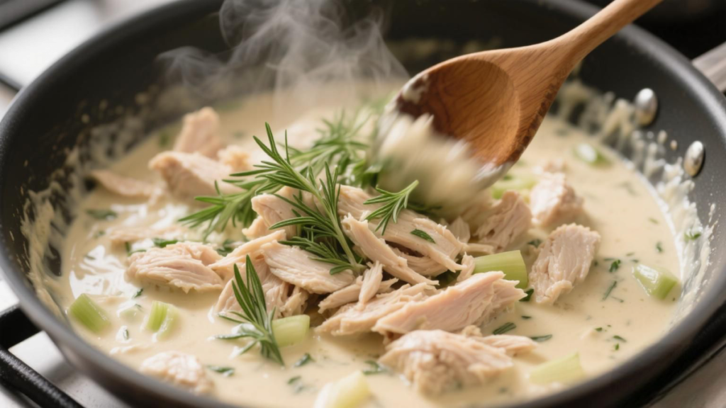 - Why This Filling Works: The filling is a classic velouté-style sauce. We create a roux (butter and flour), add liquid (milk and stock), and simmer until it thickens. The starch molecules in the flour swell and trap the liquid, creating a luscious, stable emulsion that won’t split or become watery during its final bake in the oven.