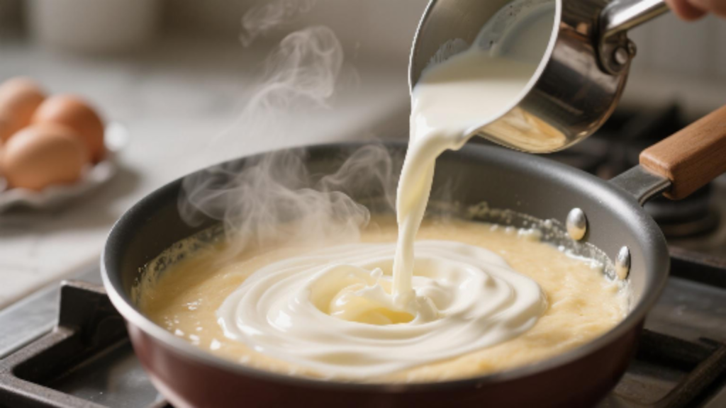 - Egg to Dairy Ratio: This specific ratio of whole eggs and yolks to full-fat dairy provides enough protein to set firmly, while the fat guarantees a lush, creamy mouthfeel.
