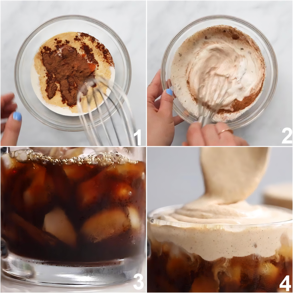 Step 4: Finally, gently layer some of the prepared pumpkin cream mixture on top of the cold brew. To combine the layers, use a tall stirrer or a straw to stir the drink before serving.